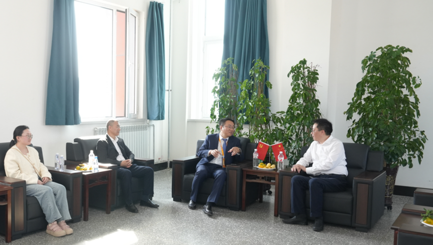 雷小平副總經(jīng)理(右一)與地礦學(xué)院副院長(zhǎng)劉洪林(右二)等座談交流