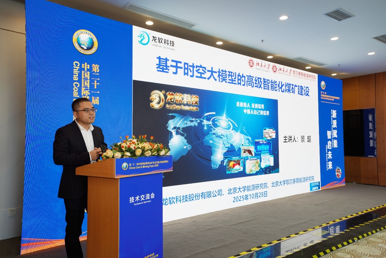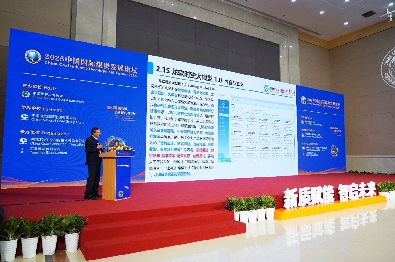 展會期間,北京大學教授、龍軟科技董事長、北京大學鄂爾多斯能源研究院首席科學家毛善君教授應邀在2025中國國際煤炭發展論壇上做《基于時空智能的高級智能化煤礦建設》專題報告。副總經理、總工程師景超做龍軟科技《基于時空智能的高級智能化煤礦建設》專場技術交流。詳細介紹了龍軟科技-北京大學團隊在智能化煤礦建設方面的創新成果和實踐經驗,提出了高級智能化礦井建設的6626工程,重點匯報了龍軟時空大模型1.0(Loong Model1.0)的內涵和實際應用,并分享了團隊在煤礦裝備智能化、地測透明化、分析在線化、智能系統化、控制協同化、生產綠色化等方面取得的顯著成果。其中基于透明化地測保障系統的智能化礦山管控平臺及其應用系統,相關核心技術已獲中國和美國、加拿大、澳大利亞、俄羅斯發明專利。