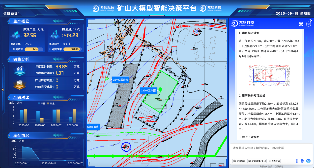 龍軟時(shí)空大模型1.0(Loong Model 1.0)是基于團(tuán)隊(duì)多年在地理信息、時(shí)空智能、工業(yè)互聯(lián)網(wǎng)、大數(shù)據(jù)等領(lǐng)域的技術(shù)積累,研發(fā)推出的首個(gè)工程領(lǐng)域,特別是礦山工程領(lǐng)域人工時(shí)空智能大模型及應(yīng)用系統(tǒng)。通過(guò)自研的矢量圖形大模型、面向視覺(jué)的智能分析模型等,以礦山等行業(yè)為應(yīng)用場(chǎng)景,通過(guò)知識(shí)訓(xùn)練、私域知識(shí)和經(jīng)驗(yàn)學(xué)習(xí),實(shí)現(xiàn)對(duì)多源多模態(tài)數(shù)據(jù)的實(shí)時(shí)分析和深度理解,破解礦山領(lǐng)域矢量處理困難、行業(yè)知識(shí)融合不足、流程管控復(fù)雜等痛點(diǎn),提供與安全生產(chǎn)全生命周期相關(guān)的“智能設(shè)計(jì)、智能問(wèn)答、智能問(wèn)數(shù)、智能看圖、智能分析決策”等應(yīng)用。最終通過(guò)“時(shí)空感知-精準(zhǔn)決策-高效執(zhí)行”的新模式,推動(dòng)人工智能與礦山領(lǐng)域從“淺層結(jié)合”邁向“深度融合”,讓AI從“讀懂文字”升級(jí)到“看懂圖形”,從理解語(yǔ)言走向洞察空間,解決了目前大預(yù)言模型無(wú)法滿足工程領(lǐng)域矢量圖形處理的重大需求。